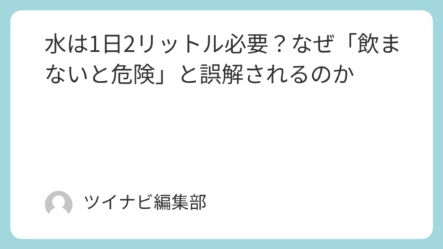 水は1日2リットル必要?なぜ「飲まないと危険」と誤解されるのか